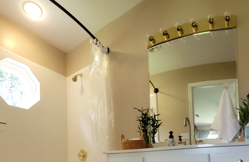 -Upstairs BR – King bed plus bunk bed (2 twins stacked), ensuite bathroom, walk-in shower