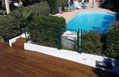 On large raised ground (5000m2), 2 independent houses; ideal for families with children. With heated pool, spa and jet 4 places, boules lit, summer kitchen (pizza oven and barbecue), children's games (swing, large trampoline, babyfoot, pingpong table), kitchen garden, henhouse, veranda and 2 large shaded terraces for outdoor dining.