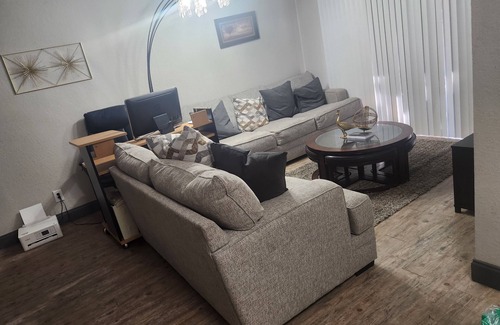 This modern and cozy apartment is your perfect base for exploring all that Arlington has to offer. Whether you're here for business or pleasure, you'll find yourself conveniently located near major attractions like AT&T Stadium, Globe Life Field, and Six Flags Over Texas. With comfortable beds, high-speed Wi-Fi, and a fully equipped kitchen, you'll have everything you need for a productive work trip or a relaxing vacation. Book now and experience the best of Arlington.