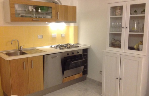 The apartment has marble floors and the ceilings are vaulted, the kitchen has a gas hob, a dishwasher, a table for 4/6 guests, a comfortable double sofa bed, a double bedroom and a bathroom with shower and washing machine.