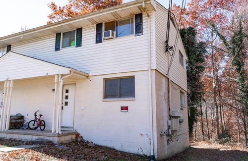 This 2 story apartment is spacious and affordable! The property was once military officer housing and the 3 bedrooms that sleep 6 comfortably make this the perfect place for your group! The living room is spacious and dining room make for a great gathering place. The bathroom and bedrooms are all on the second floor. The kitchen is small, but well equipped! There is a small back patio and nice wooded views.