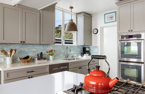 The chef's kitchen is sleek, fully equipped, and ready for everything from quick beach snacks to gourmet meals shared with loved ones.