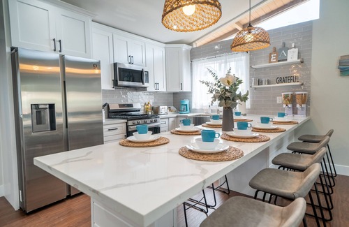 Dive in this unique 3BR 2Bath retreat just a 7 min drive from the world-famous Disneyland. Feel like Aquaman while playing on arcade machines in the submerged game room. Once you beat the high score, cool off in the pool and soak up the sun in the luxury backyard.