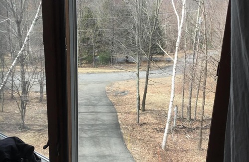 Come experience mountain inspired quiet in this peaceful light filled home up a winding road on a hillside, nestled in view of a few Catskill peaks. The fall is the sweetest time here- the colors, the cool air, fires by the fire pit with everyone wrapped in sweaters. In Fall, the sound of the mountain stream just past the edge of the property is still delightful. Birches are visible from nearly every window, and sounds of great horned owls, foxes, turkeys and songbirds fill the quiet in this lovely neighborhood on a dead end road. Hearing a car go by is a rare occurrence. The house has several places to sit and read, or gather for connection time with kids or your beloved. There are also several nooks and crannies both indoors and outdoors, where solitude can be found even if the house is full of people. The living area has vaulted ceilings with sliding doors to the deck and skylights- the natural light is great all year round! We love to sit on the front lawn in the Adirondack chairs, or on the sunny deck, and take in the mountain views and feel our bodies relax. Enjoy family meals at the farmhouse table, or dine out on the deck, where the breezes are divine and the night stars astound! Or cozy up in the finished furnished basement, where a gas stove makes things extra toasty and the you can binge-watch your favorite shows on the smart TV, or browse our collection of DVDs. The kitchen is fully stocked with a large stove, additional counter seating for drinks or snacks, and an array of basic spices, staples and utensils for quick and easy food preparation. There is a gas grill for your use as well. At night, there is a fire pit for connecting with one another, and the house is equipped with wi-fi.