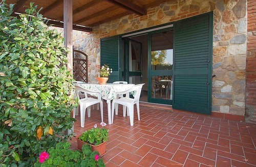 On the Tyrrhenian coast of Tuscany, this beautiful property is surrounded by olive groves and a private pool for guests. Beautiful 3-family house "Coast", surrounded by fields. Below Bibbona 7 km from the centre of Cecina, 16 km from the centre of Castagneto Carducci, 20 km from the centre of San Vincenzo, 6 km from the sea, in the countryside. For shared use: property (fenced), garden, swimming pool (6 x 12 m, depth 140 cm, seasonal availability: 01.May. - 31.Sep.). Outdoor shower, table tennis, barbecue. Private: patio, garden furniture. In the house: internet access, heating available only from 15.Oct. - 15.Apr.. Parking on the premises. Grocery 3 km, supermarket 7 km, bus stop 4 km, railway station 7 km, sandy beach 6 km. Please note: the owner lives on the same property. Additional accommodations can be booked. From the property you have easy access to nearby beaches of Marina di Bibbona, Cecina and Donoratico.