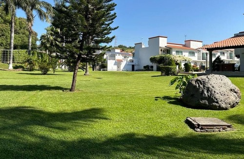 The eternal spring or so that is what beatifull Temixco hast to offer you. Quiet vacation home in a gated community relax from the busy city. Fully equipped kitchen, each bedroom with a/c/ cozy family room. Take a walk in the jardin or read in the close to the sounds of a running river.