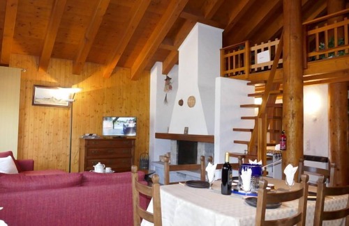 "Mona", 4-room house 100 m2 on 3 levels. Spacious, partly with sloping ceilings, very comfortable and cosy furnishings: open large living room with open-hearth fireplace, dining table, satellite TV, flat screen and radio. Large, open kitchen (oven, dishwasher, 3 ceramic glass hob hotplates, microwave, electric coffee machine, Capsules for coffee machine (delizia) extra, raclette grill, fondue Set (chinoise, cheese)) with dining table, electric heating and gas heating. Exit pergola. Shower/WC. On the lower ground floor: 1 room with 1 double bed. 2 rooms, each room with 1 x 2 bunk beds. Shower/WC. Large terrace 66 m2, south facing position. Terrace furniture, balcony furniture, barbecue, deck chairs (4), box-room. Beautiful view of the mountains and the countryside. Facilities: children's high chair, baby cot for up to 3 year olds (extra), hair dryer, logs (extra). Internet (WiFi, extra). Please note: suitable for families. Non-smoking house. Maximum 2 pets/ dogs allowed. NL-00003941