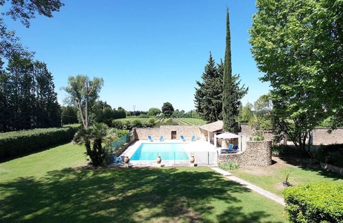 This holiday rental for 10 people with a private swimming pool is located near Isle-sur-la-Sorgue in the countryside of the hamlet of Vignères, at the gates of the Luberon natural park (Vaucluse department), in ProvenceThis Provençal farmhouse dating from the 19th century embodies the very essence of life in Provence.Nestled in the heart of the region's picturesque landscapes, this traditional farmhouse offers an idyllic setting for unforgettable holidays.A few minutes by car, you will easily have access to amenities while enjoying the calm and tranquility of the countryside.The hamlet of Vignères is located approximately 8 km from Isle-sur-la-Sorgue.L'Isle-sur-la-Sorgue is a charming small town, called the Comtadine Venice.It is renowned for its pretty canals and dawn mills.One kilometre upstream from the town, you will be able to admire the spectacle of the "Water Sharing" where the river splits in two and forms a magnificent body of water, shaded by generous vegetation.For lovers of beautiful things, L'Isle-sur-la-Sorgue is renowned for being one of the most attractive towns for its antique village.It has more than 250 antique dealers, either in shop clusters or in small independent shops.These small antique shops filled with treasures give the town a wonderfully romantic atmosphere.The market in Isle sur Sorgue is also one of the most renowned in the region.It takes place on Sunday. You can practice fly fishing initiation on the Sorgue or go kayaking.During your holidays in Provence, you will be able to set off to discover the picturesque villages of the Luberon such as Fontaine de Vaucluse, Gordes, Roussillon or Saint Rémy de Provence in the Alpilles.You will be 15 minutes from Isle-sur-la-Sorgue or Avignon airport. And 30 minutes from Avignon city centre station or 45 minutes from the TGV station.The A7 motorway allows you to reach Marseille Provence Airport in 45 minutes or its port in 1 hour, Aix-en-Provence in 50 minutes, Cassis and its calanques in 1 hour 30 minutes.The largest cities closest are CAVAILLON (9 km), L'ISLE SUR SORGUES (9 km), AVIGNON (20 km), APT (36 km), SALON-DE-PROVENCE (44 km), AIX EN PROVENCE (78 km).Provençal mas with swimming pool near Isle-sur-la-Sorgue has a 5000m² enclosed park planted with hundred-year-old plane trees.It consists of:- A pleasant private swimming pool (13x6, depth from 1m to 2m) accessible by steps, with a wrought iron protection barrier. Pool in service from April to end of October with 8 sunbeds and 1 parasol.- A covered terrace & pool house by the pool including a fitted kitchen with electric plancha, dining area, changing room, shower and WC.- A shaded terrace under the plane trees with a dining table that can accommodate 10 people- A parking area that can accommodate up to 4 cars under the canopy- A ping-pong table and a pétanque court are at your disposal for the pleasure of young and oldINTERIORThis Provençal Mas with swimming pool in Vignères has an area of 180 m², on 2 levels, it is decorated in a carefully crafted Provençal style.This Provençal farmhouse with a swimming pool near Isle-sur-la-Sorgue is a haven of peace, combining the rustic charm of traditional Provençal architecture with contemporary comfort.The thick stone walls, exposed beams and terracotta floors bear witness to the authenticity of this place, while modern amenities ensure a most pleasant stay.GROUND FLOOR:A magnificent entrance adorned with a unique cross-ribbed vault.An independent fitted kitchen (dining area, 4-burner gas hob, oven, dishwasher, filter coffee machine & Nespresso).A back kitchen with fridge and microwave.A spacious living room enhanced with a period fireplace, a dining area that can accommodate 10 people and a lounge area where you will find board games at your disposal.A room with a large bed of 180 x 200 cm convertible into 2 beds of 90 x 200 cm upon request.A bathroom. An independent toilet with 1 washbasinFIRST FLOOR:A stone staircase, decorated with a beautiful wrought-iron railing, leads to the upper floor where a library invites you to read. Laundry room with washing machine, iron and ironing board, and hair dryer.3 bedrooms, each with their own walk-in wardrobe and their own bathroom:One bedroom with a large bed of 180 x 200 cm convertible into 2 single beds of 90 x 200 cm on request and an adjoining bathroom (1 bathtub, 1 washbasin)One bedroom with a large bed of 180 x 200 cm convertible into 2 single beds of 90 x 200 cm on request and an adjoining bathroom (1 bathtub, 1 washbasin)A master suite with walk-in wardrobe and adjoining bathroom (1 shower, 1 bathtub, WC), with a large bed of 180 x 200 cm convertible into 2 single beds of 90 x 200 cm on request and 2 single beds of 90 x 200 cm convertible into a large double bed of 180 x 200 cm on request.1 Independent toiletEnd of stay cleaning: €220;Deposit: €500.Maximum sleeping capacity: 10 people.Sheets, towels, tablecloths & tea towels included.It is necessary to bring your pool towelsBaby cot and high chair available at no extra chargePets allowed upon request: €35/animal and per stayElectricity costs included; Heating not included, fuel flat rate €150/weekECO-GESTURESelective sorting has been implemented: yellow and black containers are made availableACCESSIBILITYThe house is not suitable for people with reduced mobility.