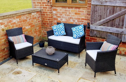 The pretty courtyard has garden furniture, outdoor lighting and a large Weber barbecue, all with easy access to the kitchen!