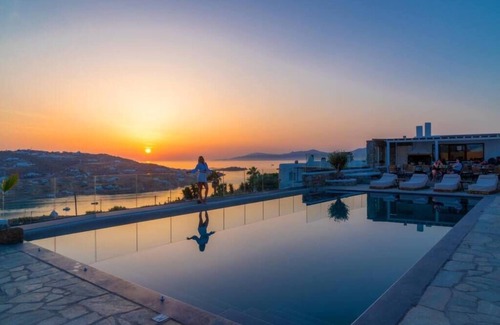 Very elegant suite for 2 people, with indoor jacuzzi and private bathroom. the outdoor area consists of a private terrace with a view. Located in a residence with public swimming pool for the exclusive use of guests, bar and reception. free parking in the structure for any vehicle. ideally located for the island of Mykonos, it is about 800 m from the city center, 2 km from psarou beach and platis gialos, 3 km from ornos beach, 6 km from the beaches of paraga and paradise beach, all easily accessible by car, moped, or by bus. about 150m, on the main road, there is a bus stop that makes trips to the center of Mykonos town and to all the beaches. just outside the structure, on the main road, there are: mini markets, tobacconists, taverns with typical Greek cuisine, cafeterias and ATMs. daily cleaning, change of bed and bathroom linen every 3 days, safe, wi-fi, 24-hour assistance, all services are included in the final price.