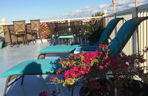 Breathtaking VIEWS of The Gulf of Mexico from your ROOFTOP patio with a bar for Happy Hour, dinner table and lounge chairs ...PARADISE! Also a great spot for star gazing at night.