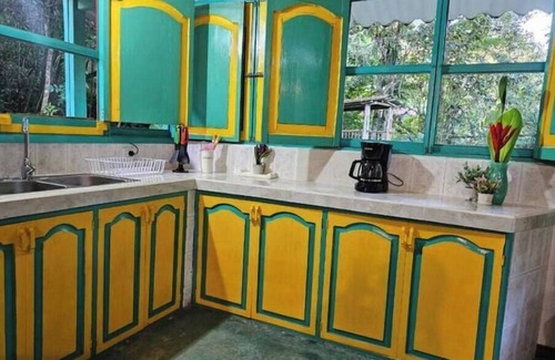 Nestled in the serene Boquia area, Villa Alegría offers a spacious 4-bedroom, 3-bathroom home for up to 13 guests. This charming property features a fully equipped kitchen for light cooking, comfortable living and dining spaces, and stunning views of the surrounding nature. Daily maintenance and cleaning services are provided by the property manager to ensure your stay is comfortable. Enjoy the tranquility of a creek running through the property, with the Quindío River just steps away. Best of all, downtown Salento is only a 5-minute drive away, offering easy access to the town’s vibrant culture and attractions.