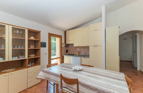 Located at Vecchio Marino, in particularly quiet and elegant area of the town and convenient to the beaches, center and all services of Palau. Beautiful Villa with large garden, consisting of: living room with kitchen area, 2 double rooms (one with en-suite bathroom) and one room with bunk beds two double rooms, a second bathroom. Outside there is a beautiful shaded veranda of considerable size, large garden of 270 square meters arranged on three sides from which stand out beautiful granite rocks, there is also an outdoor shower. It has air conditioning throughout the rooms and in the lounge/kitchen, washing machine, dishwasher, microwave oven and TV.