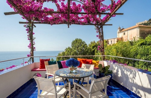 This stunning villa is situated along the coastal road, just 3Km from Amalfi town centre. Surrounded by Mediterranean vegetation, all cascading down to the sea, the property has furnished terraces on three levels, ideal for al fresco dining. There is a private swimming pool (4x8 m; 1.50-2.20m deep) is located on one such terrace, the area equipped with sun loungers, 2 showers and a shaded dining area seating up to 12 people. Please note that there are steps from the pool area to the villa. Bars and shops are 3km away in Amalfi town centre.