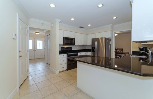 The comfortable, sun-filled living room features a flat-screen TV and high-speed WiFi. A second TV can be found in the master bedroom. The spacious dining area as well as the breakfast area and the fully equipped kitchen, open up to the pool deck. In addition, we provide beach chairs, umbrella and cooler. It is the perfect getaway not only for golfers but also for families. It offers beautiful walking trails in a park-like environment. Downtown Sarasota is only about 10 min away, upmarket excellent shops & gourmet restaurants, as well as award-winning beaches, are all nearby. Seasonal membership for the Meadows Country Club may be purchased, which will give access to the private Golf Course, Tennis Courts, Fitness Center and Community Pool. 3 minutes from the public golf courses "The Groves" and "The Highlands"