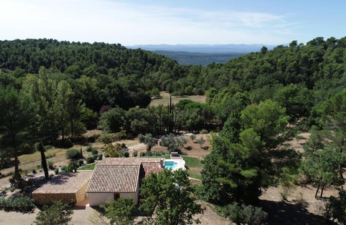 The winding road up to the village of Tourtour, with beautiful far views over the green region, puts you in the right holiday mood. Here you can enjoy pure authenticity. Via a side road you arrive at the villa, which is located on a plot of more than 10 hectares of private land. You can take long walks or children can play freely and enjoy the peace.