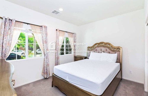 Gorgeous home located in the most desirable area of Ontario Ranch. The spacious 3044sq ft living spaces, consist of 4 Bedrooms and 3 Bathrooms home with huge yard is perfect for family of 8. The large master bedroom features King bed ensuite bathroom with double vanity, a walk-in shower and walk-in closet. Other bedrooms are furnished with Queen beds, walk-in closets, airy and bright, a lot of cabinet storage space. The gourmet kitchen includes stainless steel appliances, granite countertops and island. Main home has upgraded custom flooring throughout. Beautiful landscaped and Simple easy to maintain the backyard. Community has children's playground with professional greenbelt landscaping.