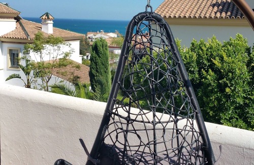 Pretty Andalusian villa of 180 m2 completely renovated in with large swimming pool and sea view. In a quiet area but close to shops and the beach (8 minutes walk). Garden fully planted with trees and flowers, closed with parking for 2 cars + parking spaces on the very quiet street.