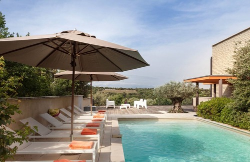 Villa Venasque is a beautiful dry stone contemporary property, located close to the popular village of Pernes les Fontaines and offering high standard, modern interiors and magnificent outdoor living space including a spectacular roof terrace with panoramic views.