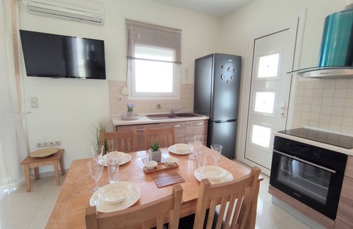 Fresh fish and local traditional Greek dishes are served in the near-by restaurants. Fresh bread and pastries are available at the local bakeries every morning. Sun-loungers and umbrellas can be hired at the beach. In general the area is very quiet with nice and clean beaches and is famous for the natural environment and the local food.