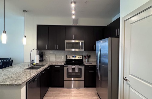 Our apartments are fully furnished with beds, linens, pots, pans, cookware, utensils, utilities and cable/internet. Parking is also included.