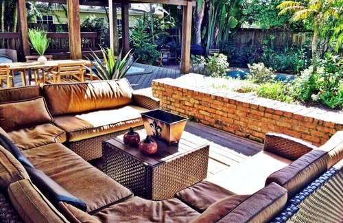This single story 5 bedroom home is the most notable home in the historical Colee Hammock area of Ft. Lauderdale. The 2 Common areas provide plenty of space for any group. There is adequate sleeping space… 3 Queen beds, 4 twin beds, 1 full bed, 1 pull out sofa, and 1 futon ensures that everyone in your group sleeps comfortably. Barbeque on the deck and eat under the covered porch. Walk out your bedroom door to the sun deck and Private Heated pool. The home is just steps from the world famous Las Olas Blvd, home to all the local shops, restaurants, and hot spots. You will be located right in the center of it all. The home has a beautiful backyard with pool and very large deck area which are the focal point of the house. We also have a six seater street legal golf cart rental option with sound system. The coolest way to cruise up and down Las Olas blvd and A1A beach Blvd. if your decide to reserve one with your reservation it will be charged, delivered and ready for you upon arrival.