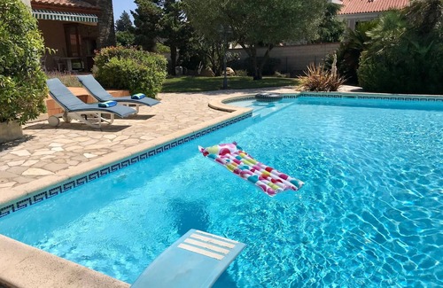Belle villa avec piscine privée chauffée avec grand jardin située au village Laroque des Albères à 10km de la mer.