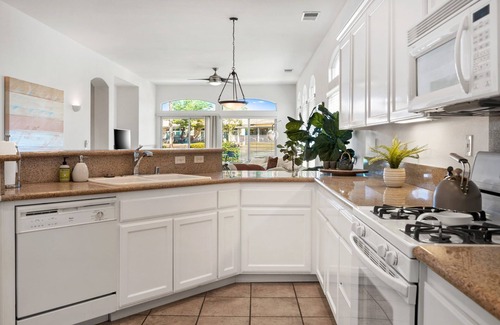 Enjoy the jacuzzi and giant pool as well as pickle ball and tennis courts. Single level, two Primary Bedrooms open up to a beautiful, oasis in the backyard. The large windows and fireplace allow for a relaxing indoor/outdoor atmosphere. Great for entertaining! Fireplace, streaming TV, Sonos sound system for your tunes. This place was made for clearing some space and recharging your mind, body and spirit.