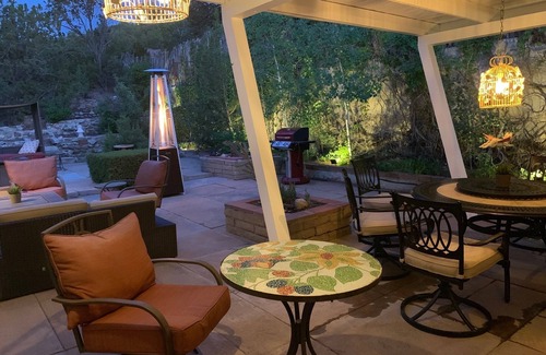 * Large patio with mature landscaping, views, grill, covered seating and dining area