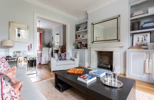 For those left uninspired by the notion that one size fits all, here, instead, is a home that’s truly unique. Cut from the finest cloth, these rooms are the very embodiment of elegance, combining antique wood, glass, rich pigments and textured wallpapers. Grand indeed is your front door, and you’re close to the gorgeous shops and cafés of Kensington High Street as well as the verdant runways of Holland Park. And after a day exhausting the best London has to offer, it’s easy to believe that the master bathroom’s luxurious shower room was created just for you. Your hostess works for a leading fashion business, while your host is in finance. They bring influences both Latin American and Dutch to their home, which they’ve just finished renovating, and they and their children travel all over the world. At once fashionable and timeless, every part of this home has been drawn to delight, from the chic furniture and dashing one-of-a-kind art to the pretty papered master bedroom. There’s a more informal purple family space with a TV downstairs and next to the brand new kitchen, you’ll find the sky-lit breakfast room, its modish Ghost chairs particularly poised. With five bathrooms, your ablutions can last all morning should you wish, and the master bedroom is especially blessed, a freestanding porcelain bath in its ensuite.