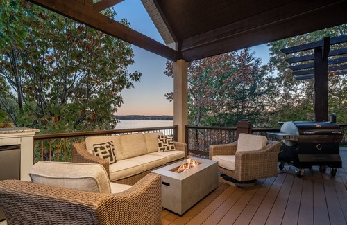 Make memories with friends & family over spectacular lake views. Enjoy the large double deck perfect for grilling and watching sunrise & sunsets. The house sets just steps to your own boat dock with swimming platform. Main channel view of the lake but set a few houses back in our wide cove for safe swimming, kayaking, paddle boarding and floating.
