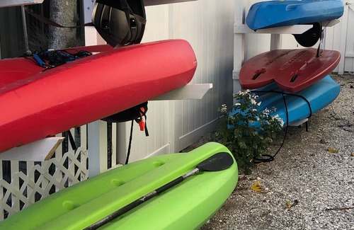 Kayaks with life jackets, bikes, basketball goal, beach wagon, cooler, and beach chairs! There is complimentary wifi, a full laundry room, outside dining with grill, and basic fishing poles to catch your dinner! So come with your bathing suit and suitcase. Owners live next door and welcome our guests only of our units to use the pool 10am to 6pm daily.