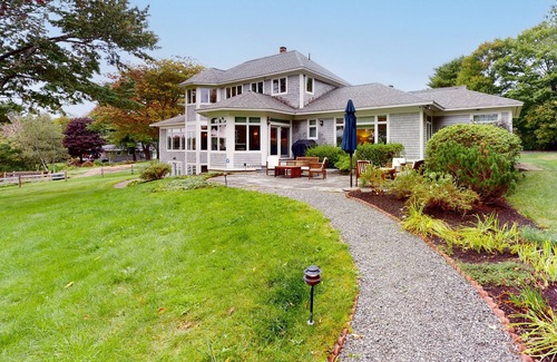 With a fabulous Belfast Harbor location looking out towards Penobscot Bay, this lovely vacation rental has water views and direct access with a sweeping lawn down to the water. This unique property has over 200 feet of waterfront, and there is a private firepit on the beach. The yard has mature plantings and lovely landscaping.