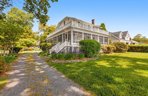 Overlooking Chesapeake Bay, this charming Annapolis home is nestled in the serene Bay Ridge community, just steps away from a private beach. Bring the whole family together and relish watching gorgeous sunrises and sunsets and taking in panoramic bay views from both levels of this home's wraparound porches. When you aren't lounging and watching yellow, pink, and orange hues fill the sky, head for the backyard, where a patio, ample seating, and a gas grill provide the perfect space to host cookouts! The screened, first-level wraparound porch is also a prime location to host crab feasts or barbecues while looking out onto the water.