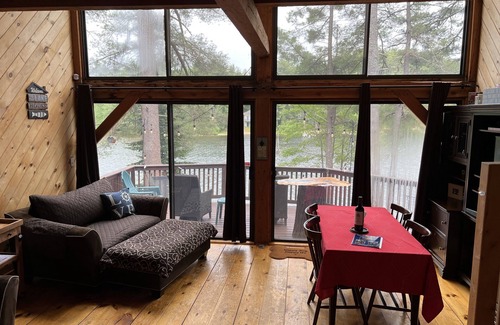 Your perfect getaway will be in this 500-square feet, glass-front house on Loon Pond. This is the perfect escape from your busy life.