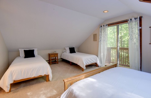 Reconnect with nature at this waterfront 3-bedroom, 4-bathroom vacation rental. The New Durham home features a bright interior with skylights throughout, balconies and decks, and direct access to Chalk Pond from a small swim dock. Spend time on the water or by the fire pit. In the winter, hit the nearby ski slopes or snowmobile trails.
