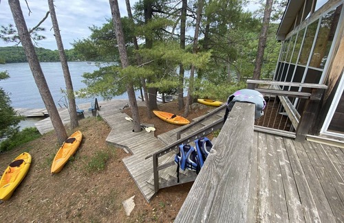 Part of the Signature Collection at Lakeside Getaways, Rustic Cove Getaway delivers the quintessential Canadian cottage experience. Here modern comfort meets timeless rustic charm. Rustic Cove is perched on a rocky point at the end of a picturesque lane way. It is surrounded by towering white pines and offers sweeping views of Lac Dame from nearly every angle.