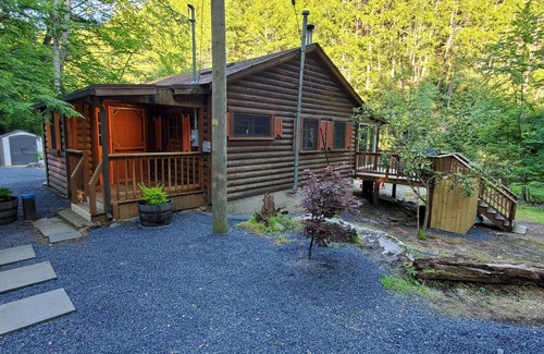 Peaceful - 2 bedroom (1 queen bed and double) with loft (2 single beds) on the bushkill creek. The cabin is waterfront and private on the creek. The bushkill creek is full of trout to fish and you can tube on the creek all the way to the delaware river right out your back door! A relaxing tranquil place to relax and get away. There are many things to do minutes away from skiing, tubing, rafting, golf, jet skiing, atv, paintball- skiing shawnee mtn canoe/kayak delaware river, camelback, alpine mountain, crossings outlet, bushkill falls, pocono nascar raceway, tobyhanna state park, mt. Airy casino