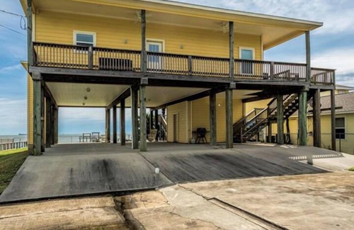 Beautiful 1500 sq. ft waterfront home with a spacious yard. This home includes 1 bedroom with a queen size bed, a sun room and open concept kitchen and living room. There is a couch in the living room that will fold out to a full size bed. There are also twin size bunk beds located in the sunroom. Plenty of space with a 300’ lighted pier for your fishing needs. Come enjoy yourself at this bay front oasis. This is a beautiful place to relax and enjoy the amazing view! This home is conveniently located 10 minutes from the Kemah Boardwalk and 30 minutes from Galveston.