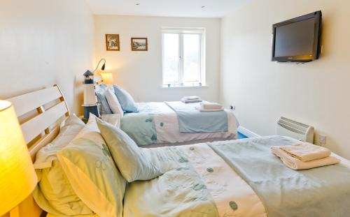 By the River Esk, The Watermark Apartments in Whitby provide contemporary accommodations just 3 minutes’ drive from the train station. These luxury apartments sleep up to 4 guests and have free parking and Wi-Fi. The accommodations includes a fully equipped kitchen with an oven, fridge freezer and dishwasher, a dining area and lounge with flat-screen TV and DVD player. A bathroom with bath and shower complements the 2 bedrooms. With a picturesque harbor and beaches, Whitby offers beautiful views on the edge of the North York Moors. The seaside village of Robin Hood’s Bay is around 5 miles away, and the sea-bird colonies of the stunning Bempton Cliffs are around 1 hour’s drive from the town.
