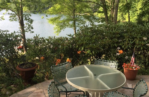 This is 1 level with 1 or 2Br & good for couple to 4 & with deck. Well equipped & fully furnished at Lake Glenville. & access to Lakeside amenities, swimming, kayaking, Fishing, Relaxing, & the Cashiers restaurants & bars. Historic Boat tours are sometimes available. The boat dock area is perfect for evening wine, & sunsets. fast Wifi & Tv also included.