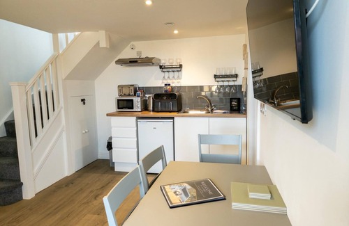 The well-appointed kitchenette is designed for convenience, equipped with essential amenities such as a kettle, toaster, microwave, and an air fryer. While this area does not feature a traditional oven or hob, it provides a basic inventory of plates, cutlery, and glasses, making it simple to prepare light meals or snacks. Should you wish to indulge in a more substantial dining experience, the Welcome Inn next door offers a mouth-watering menu and a fine selection of drinks, so you can truly luxuriate during your holiday.