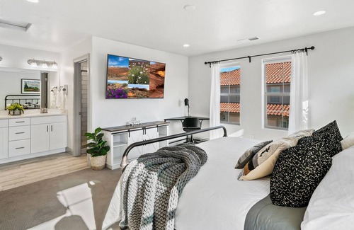 Leave behind the stresses of everyday life when you stay in this spacious townhome suitable for families and friends groups. It offers 2 primary bedrooms with a King bed in each, and two additional bedrooms with 4 Twin XL beds in each. There are a total of 2 King and 8 Twin XL beds. Enjoy water activities at the nearby Sand Hollow Reservoir (9 mi), take a drive to Zion NP (36 mi), or visit the charming scene of downtown St. George. Play pickle ball day or night on the community courts or ping pong in the garage. Free Boat & RV parking available. This property has a washer/dryer onsite, 2 dining tables for your enjoyment, a private courtyard with BBQ gas grill and outdoor table with 4 chairs, 3 Smart TVs, blackout blinds in every bedroom, a workspace in each primary bedroom, a fully stocked kitchen with all cooking essentials. Please, note that we don't provide any baby gear and we recommend, if you need any, to please contact one of the baby gear rental companies in the St. George area; they have very reasonable pricing and will deliver and pick up. We can provide them with a keyless code when they are ready to deliver. Thank you for considering staying with us!