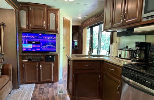 This fully stocked RV is the perfect place to disconnect and enjoy nature. Not ready to fully disconnect? No problem! We also have high-speed WIFI provided by Starlink Internet. We also have three ROKU TVs for you to connect your favorite TV/movie APPs for your viewing pleasure. This gorgeous destination camper sleeps 6 comfortably. It has two bedrooms, one with a queen size memory foam bed and a bunk house that can sleep multiple people.