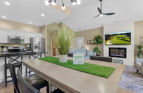 This cottage boasts 2 inviting bedrooms with 2 new twin XL beds in each. The cozy living room features an additional high end queen inflatable mattress bed for extra comfort. Guests can unwind in the peaceful atmosphere of this marvelous property, complete with a new electric heat-producing fireplace, new TVs in each room with free YouTubeTV, Echo Show for music and entertainment, large outside 4-burner stainless grill, very comfortable screened in patio with hanging egg chairs, small indoor putting green and a TV. A walk across the street you will find the pro shop, Hook Cafe and the Trophy room Bar and Grill. Rounding out all the activities and offerings is pickle ball, fitness room, outdoor pool area and basketball. With amenities like washer and dryer, bedroom TVs, well appointed kitchen with oils, spices, Kuerig and much more, your stay here will be nothing short of wonderful.