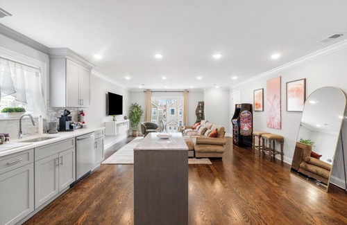 We offer features like a full master suite, natural light, 14ft ceilings, fun extras like an Arcade, PAC-MAN & GALAGA +10 more and board games. Located just minutes from Newark Airport, Prudential Center, NJPAC, MetLife Stadium, and the American Dream Mall, NYC is also a quick 25-minute train ride away. Whether you're here for work or leisure, we look forward to hosting you!