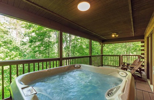 Step outside to two private decks. The back deck offers a hot tub and Adirondack chairs for relaxing under the stars, while the front deck features a dining area, grill, and a swing for enjoying the forest views. Guests also have access to a washer and dryer during their stay.