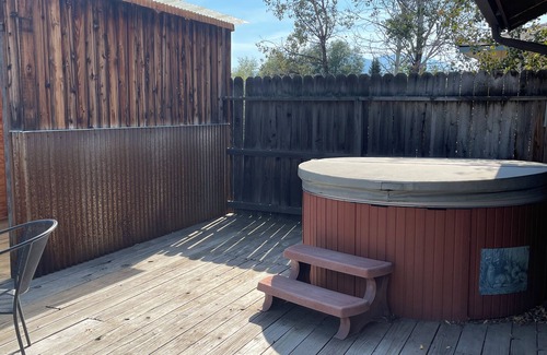 This open, simple space is comfortable and functional. Privacy fencing makes hot tub soaks very relaxing with views of the Beaverhead Mountains.