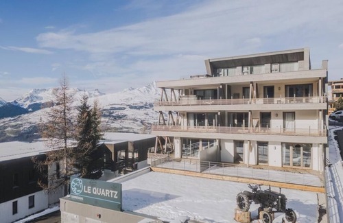 The Terresens Le Quartz Residence is located in a village resort at the entrance to the Vanoise National Park. Enjoy a ski-in/ski-out stay in the heart of Paradiski as well as other activities such as cross-country skiing, snowshoeing or even discovering dog sledding. The town centre and its shops are 900m lower, you can find a range of amenities such as supermarkets, restaurants or sports shops. Surface area : about 36-44 m². Living room with bed-settee. Bedroom with double bed (160*200). Kitchen with kettle, coffee machine (Nespresso), oven, toaster, dishwasher, microwave, 2 vitroceramics cooking rings, fridge. Shower room with towel-dryer, WC.