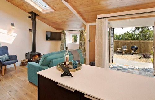 At the heart of the property is the open-plan kitchen/dining/lounge room which has wooden ceiling beams and velux windows. Snuggle up in front of the wood burner after a winter walk or on a chilly evening. There's a Smart TV with Freeview, plus access to Netflix /Amazon/iPlayer (own login details required), or you might be content just gazing at the views across the countryside.